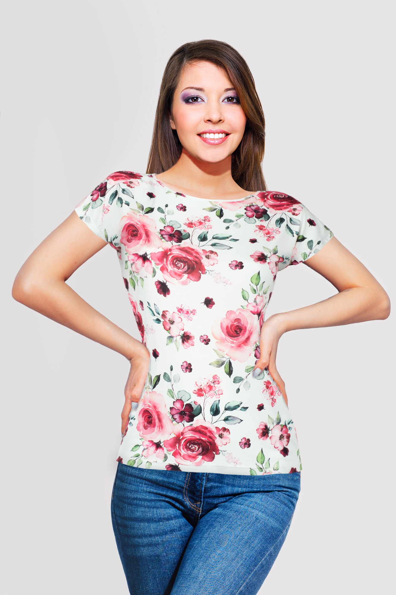 Damenbluse mit Rosen auf cremefarbenem Hintergrund