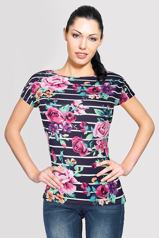 Dunkelblau gestreifte Damenbluse mit Rosen